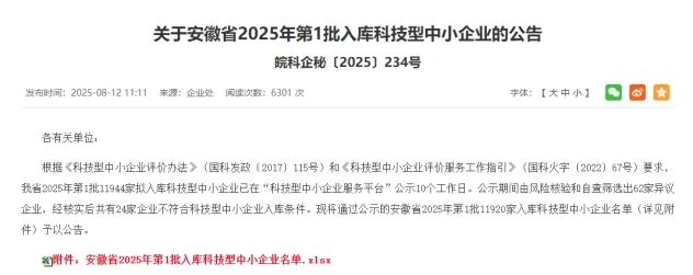 喜訊傳來!安徽省2025年第1批入庫(kù)科技型中小企業(yè)名單正式公示,合肥精大儀表股份有限公司赫然在列,這是對(duì)我司科技創(chuàng)新實(shí)力與持續(xù)發(fā)展?jié)摿Φ母叨日J(rèn)可。尤為值得一提的是,自2018年起,合肥精大已連續(xù)多年榮膺此殊榮,彰顯了其在行業(yè)內(nèi)的領(lǐng)先地位和強(qiáng)勁的發(fā)展勢(shì)頭。