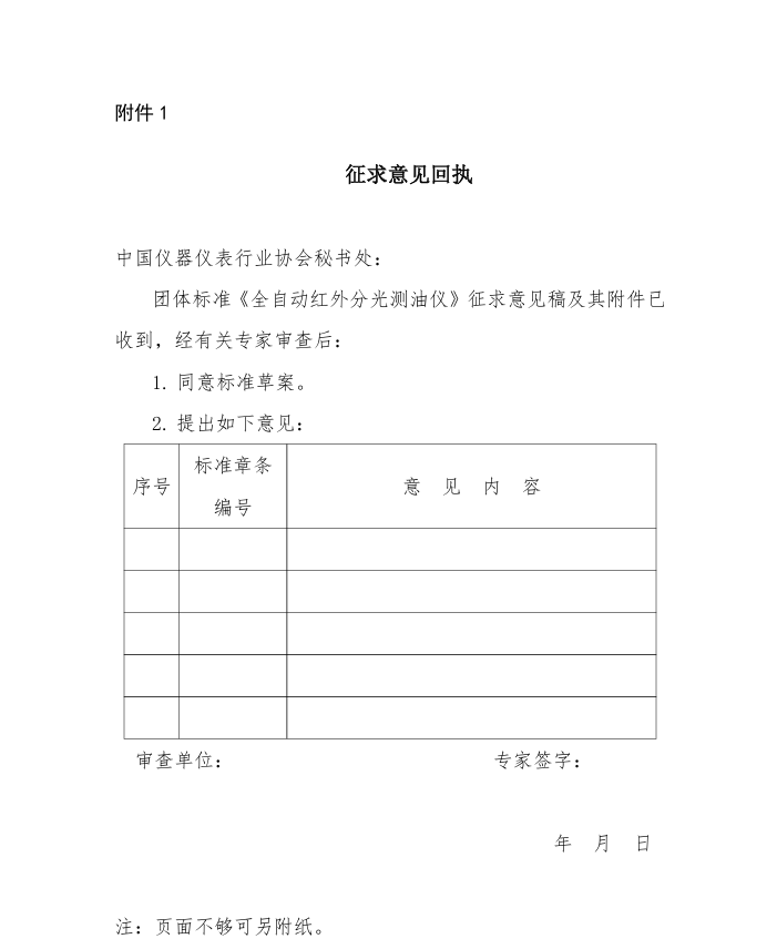 1. 征求意見回執——全自動紅外分光測油儀