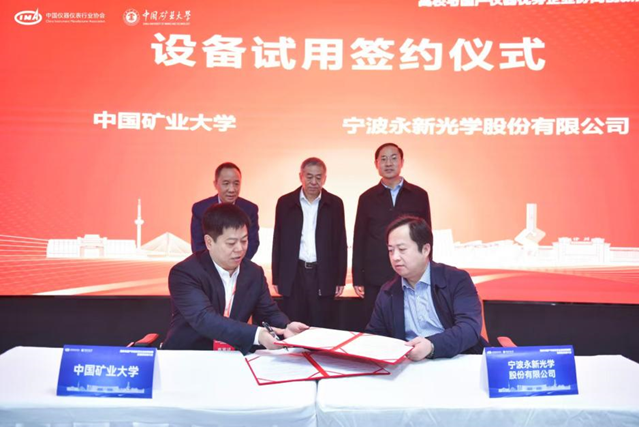 此次活動促成了寧波永新光學股份有限公司,先臨三維科技股份有限公司、成都玖錦科技有限公司、中國科學院合肥物資科學研究院4家企業與礦大簽訂設備試用協議。工信部裝備工業一司原一級巡視員苗長興、協會秘書長李躍光、礦大副書記李江濤共同見簽,礦大實驗室與設備管理處處長吳祝武代表礦大與企業簽約,通過此次設備試用協議的簽訂及合作平臺的搭建,開啟了校企儀器應用與技術合作的嶄新篇章,為國產儀器的市場化應用注入了新的動力。