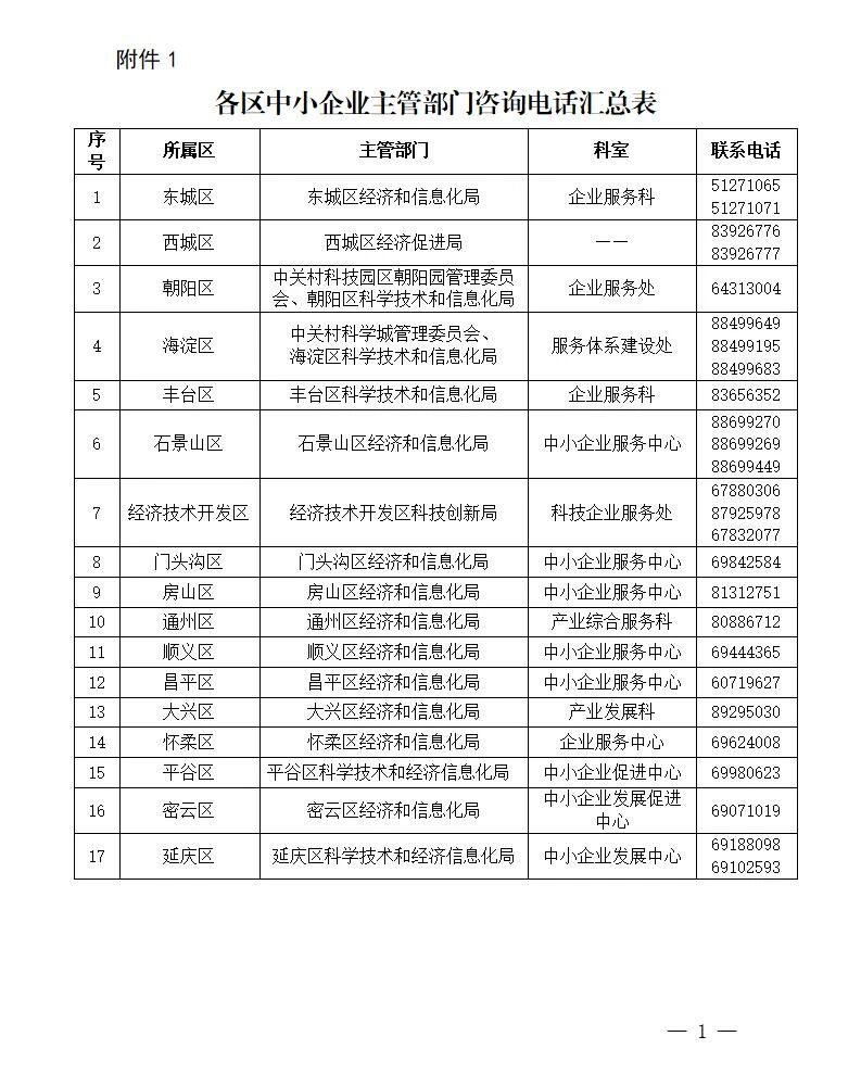 1.各區(qū)中小企業(yè)主管部門咨詢電話匯總表