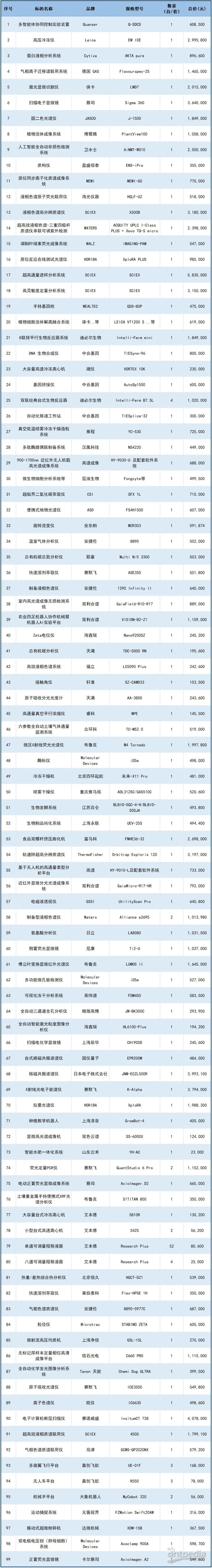 近日,根據(jù)中國政府采購網(wǎng)消息,浙江農(nóng)林大學(xué)完成一批儀器設(shè)備集中采購項(xiàng)目,中標(biāo)總金額達(dá) 9685.68 萬元。此次采購的設(shè)備覆蓋生命科學(xué)、農(nóng)業(yè)等多個(gè)領(lǐng)域,包含掃描電子顯微鏡、色譜儀、質(zhì)譜儀、光譜儀等多款高端科研儀器,既有面向基礎(chǔ)研究的檢測(cè)設(shè)備,也有服務(wù)農(nóng)業(yè)應(yīng)用的農(nóng)業(yè)四足機(jī)器人協(xié)作機(jī)械臂等設(shè)備,可滿足從微觀實(shí)驗(yàn)到田間應(yīng)用的多場(chǎng)景科研需求。