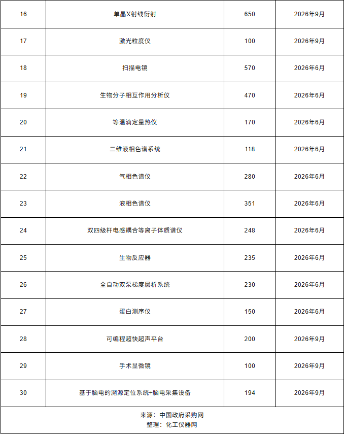 近日,南京醫(yī)科大學(xué)發(fā)布2026年2月(第2批)政府采購意向公告,計劃采購毛細(xì)管電泳色譜儀、測序儀、便攜式近紅外腦成像系統(tǒng)、激光共聚焦顯微鏡、蛋白檢測分析儀、X射線粉末衍射儀等儀器設(shè)備,總預(yù)算9364萬元,預(yù)計采購時間2026年6月~9月。
