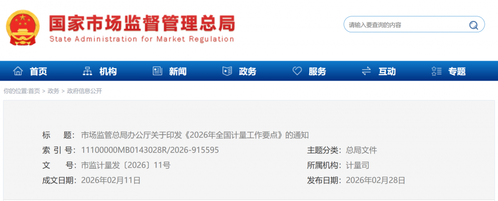 按照工作要點內(nèi)容,在加強基礎建設、提升計量保障能力方面,2026年市場監(jiān)管總局將落實市場監(jiān)管設備更新重大專項,進一步推動計量基標準裝置和計量檢定設備能力提升;支持中國計量科學研究院申報量子計量基準技術全國重點實驗室;組織開展生物計量體系和能力建設研究,為生物醫(yī)藥、生物安全等領域的精準測量需求提供政策支持等。