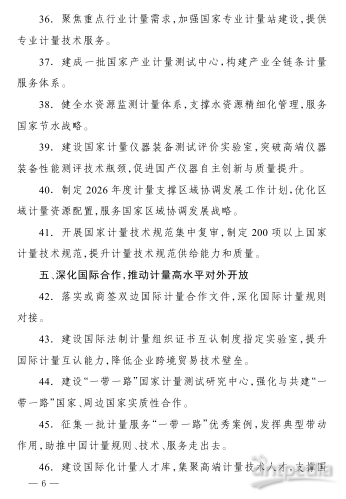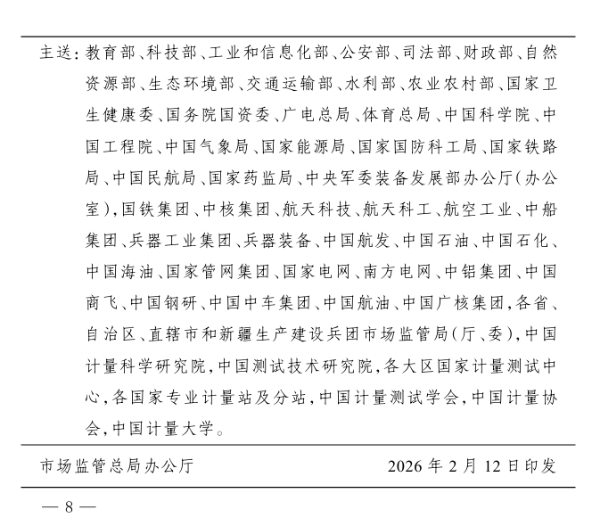 近日,市場監(jiān)管總局印發(fā)《2026年全國計量工作要點》,明確2026年將緊緊圍繞“講政治、強監(jiān)管、促發(fā)展、保安全”的工作總思路,緊扣“一個大市場、兩個綱要、三個監(jiān)管、四個安全”工作著力點,大力實施計量強基工程,科學謀劃“十五五”計量工作,加強基礎建設,強化監(jiān)管,創(chuàng)新服務,深化國際合作,加快構(gòu)建國家現(xiàn)代先進測量體系,為基本實現(xiàn)社會主義現(xiàn)代化筑牢計量基礎。