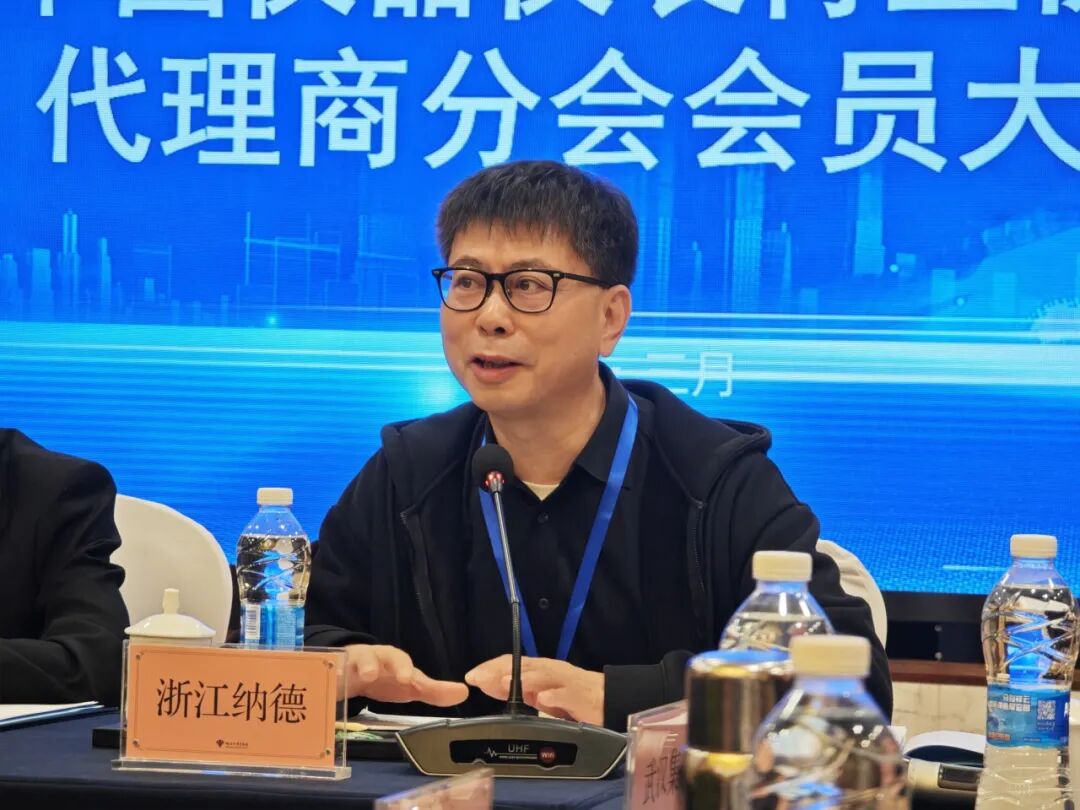 中國儀器儀表行業協會副秘書長徐振軒、浙江納德科學儀器有限公司董事長邱耀彰及來自全國各地的會員代表出席會議。會議由代理商分會常務副理事長胡章宏主持。