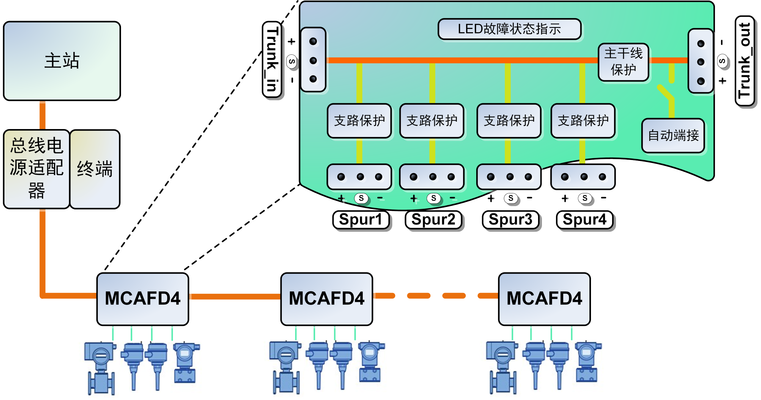 ·多通道靈活適配:4/8個(gè)獨(dú)立分支通道,支持主干線分支拓?fù)浣Y(jié)構(gòu),可同時(shí)連接4/8臺現(xiàn)場總線設(shè)備,大幅簡化現(xiàn)場布線,降低施工成本。