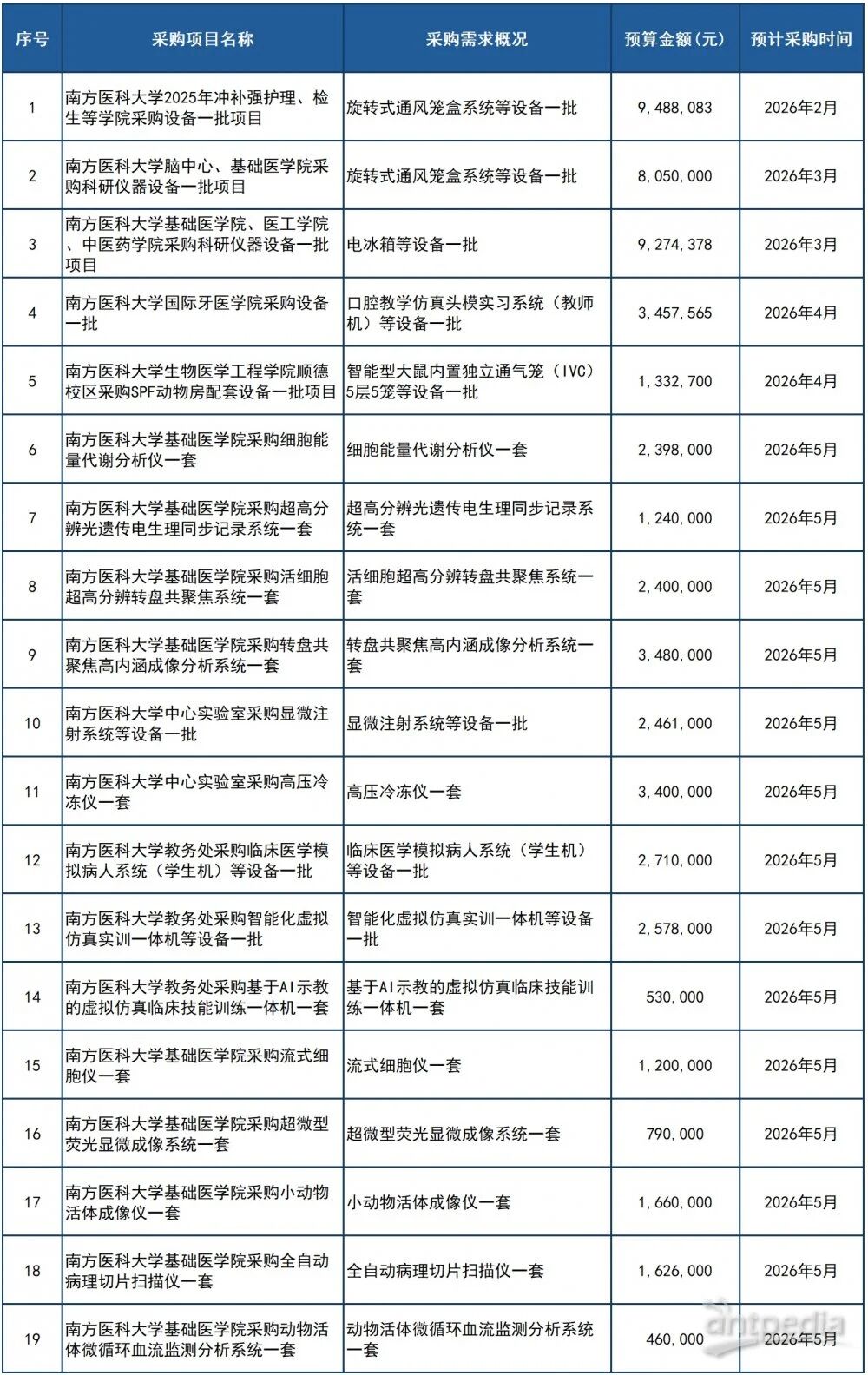 據廣東省政府采購網消息,為進一步規范政府采購行為,提高采購透明度,保障供應商合法權益,根據《財政部關于開展政府采購意向公開工作的通知》(財庫〔202010號)等有關規定,廣東省教育廳近日公布了關于南方醫科大學202602月至202612月的政府采購內容,聚焦教學科研設備升級,全力支撐學校人才培養與科研創新工作。